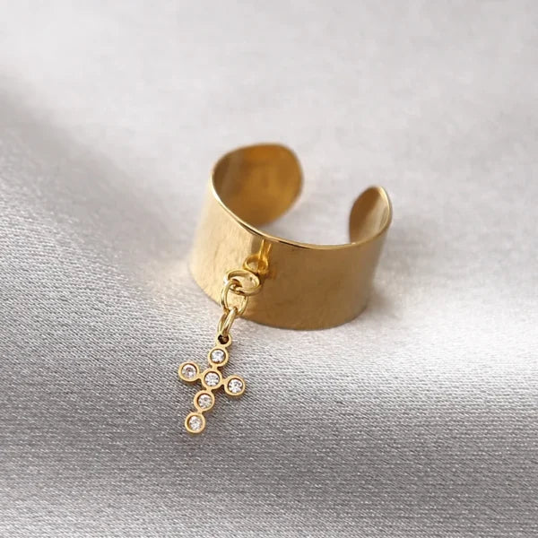 Envie d’ajouter une note chic et tendance à votre style ? La bague breloque croix dorée est l’accessoire qu’il vous faut. Parfaite pour donner une touche raffinée à une tenue casual ou compléter un look plus habillé, cette bague s’adapte avec élégance à toutes les occasions. Conçue en acier inoxydable, elle vous offre une excellente résistance à l’usure tout en conservant son éclat au fil du temps. Son design unisexe en fait un bijou idéal pour tous les styles et toutes les personnalités.