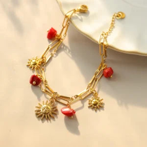 Bracelet à Breloques Soleil Doré et Grenat Étincelant