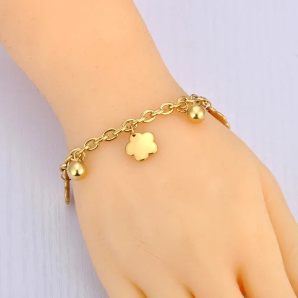 Découvrez notre magnifique bracelet breloque Trèfles et Grelots Dorés, un bijou raffiné qui apportera une touche de charme à votre poignet.