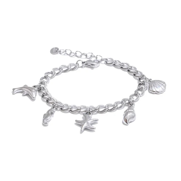 Laissez-vous séduire par le charme marin de notre Bracelet Breloque Argenté de la Mer, un accessoire raffiné qui insuffle une note de fraîcheur et d'élégance à votre style. Inspiré des trésors de l'océan, ce bijou orné de délicates breloques évoque les escapades en bord de mer et les instants ensoleillés. Idéal pour illuminer votre poignet lors d’un déjeuner entre amis ou d’un dîner romantique, ce bracelet capte la lumière avec subtilité. Conçu en acier inoxydable, il offre une excellente résistance à l’usure tout en restant léger et agréable à porter. Son plaquage en or PVD véritable lui confère une finition luxueuse, sans en alourdir le prix. C’est l’accessoire parfait pour les passionnées de mode qui souhaitent exprimer leur personnalité en toute élégance.