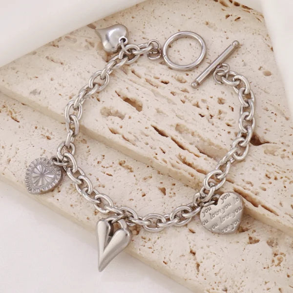 Laissez-vous séduire par notre superbe bracelet breloque cœur argenté, une pièce qui combine raffinement et tendance. Doté d’une élégante chaîne à maillons, ce bijou mode est parfait pour rehausser toutes vos tenues, qu'elles soient décontractées ou plus habillées. Son charmant pendentif en forme de cœur argenté lui confère une touche romantique et féminine. Que ce soit pour une sortie spéciale ou pour accessoiriser votre look au quotidien, ce bracelet s’adapte à toutes les envies et complète merveilleusement bien votre collection de bijoux.