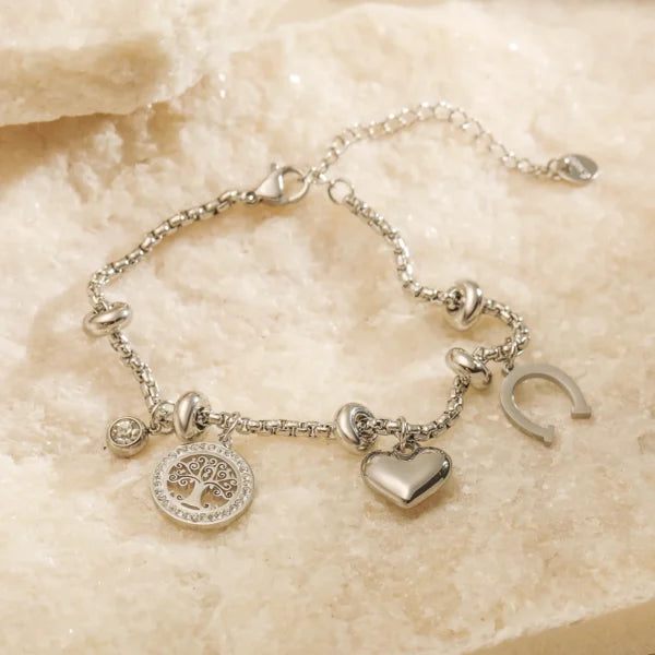 Laissez-vous séduire par le charme du Bracelet breloque Porte-Bonheur Argenté, un bijou raffiné au style intemporel. Pensé pour illuminer votre quotidien, ce bracelet orné de breloques symboliques apporte une note d'élégance et de positivité à votre tenue. Conçu en acier inoxydable, il se distingue par sa robustesse et sa brillance durable. Sa finition argentée sublime tous les styles, du plus simple au plus sophistiqué. Un véritable atout mode à ne pas manquer !