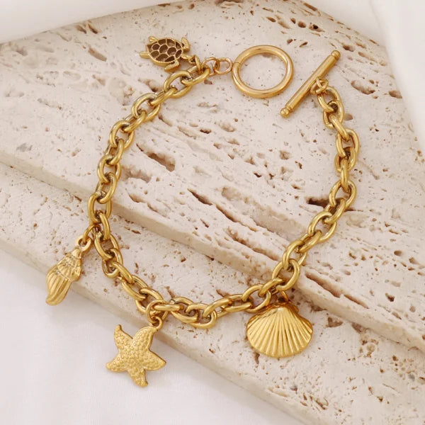 Bracelet breloques Étoile de Mer et Tortue Dorée