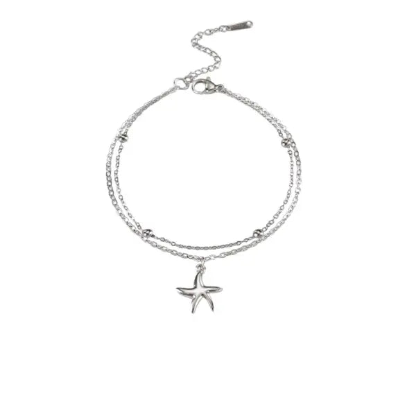 Apportez une touche d’éclat à votre style avec le Double bracelet breloque Étoile Argenté, un bijou qui conjugue finesse et modernité. Pensé pour sublimer toutes les femmes, ce bracelet se distingue par son design épuré et tendance. Que vous le portiez seul ou en accumulation, il saura illuminer votre poignet avec subtilité. Confectionné en acier inoxydable, il allie solidité et légèreté pour un confort optimal au quotidien.