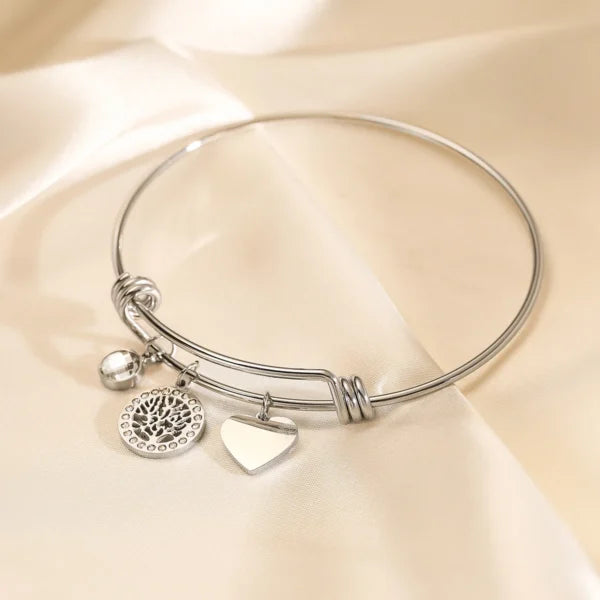 Laissez-vous séduire par le charme intemporel du Jonc à breloques Arbre de Vie Argenté, un bijou élégant qui apporte une touche de raffinement à votre style. Conçu avec une grande attention aux détails, ce bracelet en acier inoxydable affiche un design délicat et symbolique, parfait pour sublimer votre poignet au quotidien ou lors d’événements particuliers. Idéal pour celles qui aiment affirmer leur féminité avec subtilité, ce bracelet breloque allie modernité et élégance dans une harmonie parfaite.