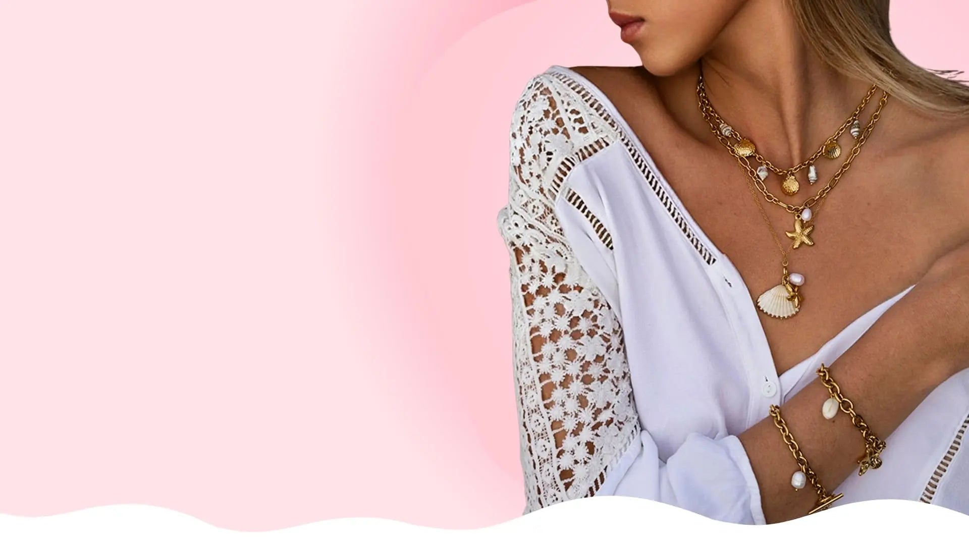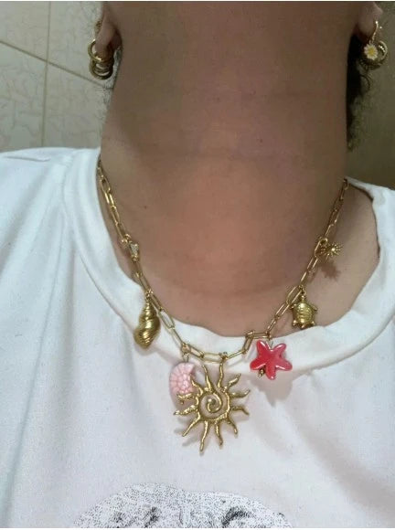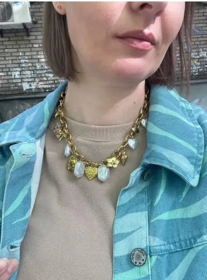 Nos colliers breloques sont conçus pour sublimer chaque silhouette. Chaque collier mêle pendentif délicat, perle, coquillage ou strass, dans des tons dorés, argentés ou en coloris naturels.